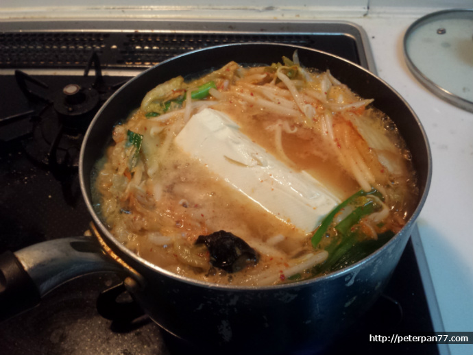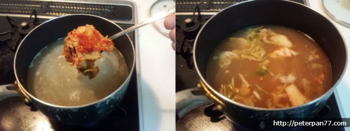 처음 일본에 유학왔을때 김치가 비싸서 아껴먹던 때가 생각납니다. 그 아까운 김치를 듬뿍넣고 김치찌개를 만든다는 것은 가난한 유학생에게 꿈도 못꿀일이었죠^^ 하지만 저도 한국사람인지라 김치를 안 먹고 살기도 좀 그렇더라구요. 아주 맛있다고는 할 수 없지만 그럭저럭 먹을만한  100엔짜리 김치(200g)가 있으니 오늘은 그 김치를 이용해서 김치찌개 만드는 비법(?)을 소개하겠습니다. 요리 포스팅은 이번이 3번째인데요 언제나 그렇듯 대충대충 설명하겠습니다. 그렇다고 성의없게 쓰는건 아니지만 양조절을 어떻게 설명하기가 어렵네요.