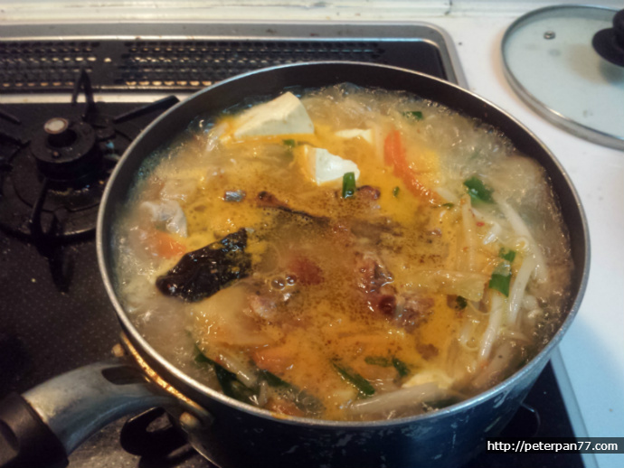 지출 : 500엔정도 (두부, 야채믹스, 돼지고기, 김치, 꽁치통조림)