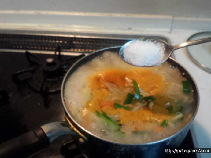 물을 붓고 다시다를 적당히 넣어주세요.물은 라면 2개끓일수 있는 양정도 넣으시면되요. 1리터정도?