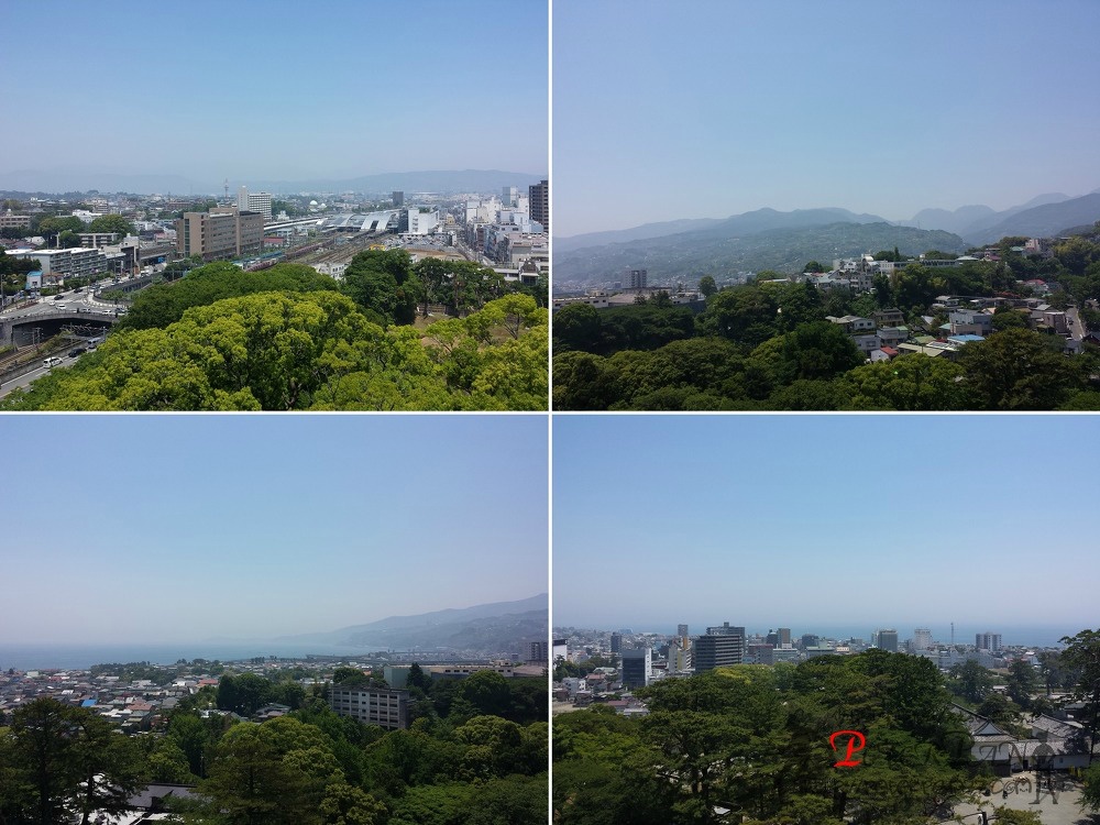 전망대에서 바라본 동서남북으로 본 풍경. 오다와라역과 바다가 시원하게 보이는군요.