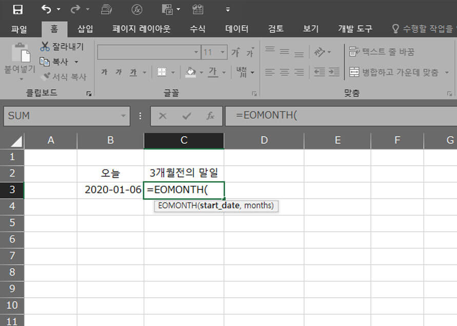EOMONTH함수의 사용방법
