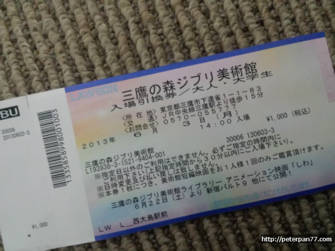 로손 티켓. 지브리 미술관은 완전예약제라서 미리 예약도 해야하고 티켓도 받아놓아야합니다.