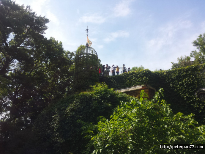 올려다보니 옥상에 산같은 풍경이 보이네요.