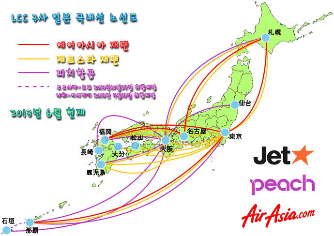 일본 국내선의 대표적인 저가항공사는 3곳이 있습니다.
