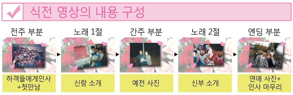 첫만남 → 신랑 소개 → 옛날 투샷사진 → 신부 소개 → 연애 사진
